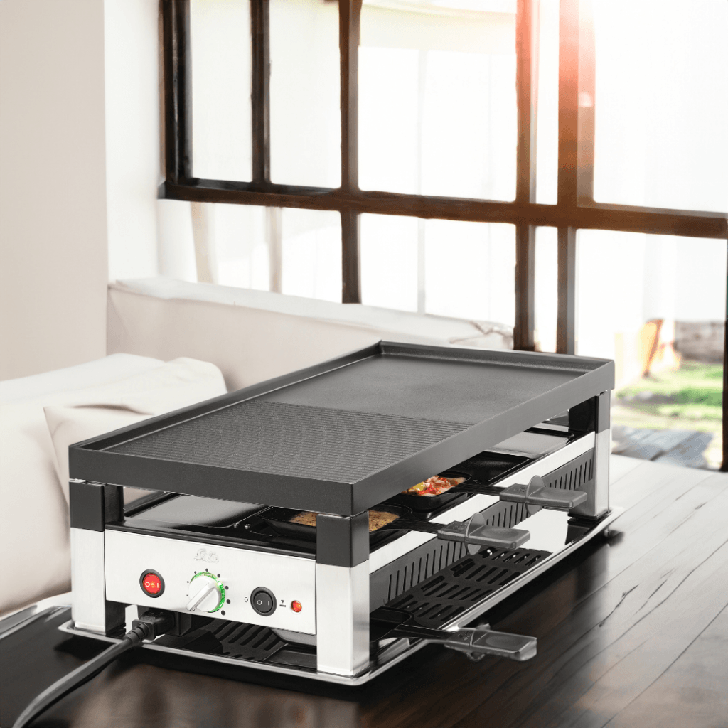 Als echtes Multitalent vereint er Grillen, Raclette, Mini-Wok, Crêpes und Mini-Pizza in einem Gerät und ermöglicht ein interaktives Kocherlebnis für die ganze Runde.
