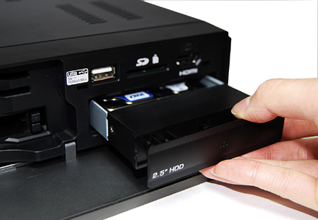 Besonderheiten:1080p, HiFi Breite, Wechselfestplattensystem, Anschluss für ext. IR Auge, SD Kartenleser, OLED Display
